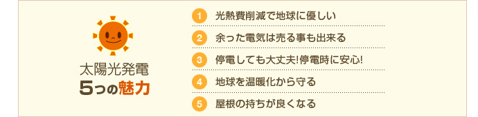 環境にやさしい太陽光発電システム。システム導入、ご利用にはさまざまなメリットがあります。環境にやさしいといだけではなく、たいへん大きな経済的メリットが得られます。ここでは、その具体的メリットをご紹介します。